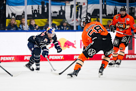 Ein ähnliches Bild auch im Schlussabschnitt. Zunächst erhöhte Matt Choupani für Wolfsburg (43.), ehe Eisenschmid kurz darauf auf 3:6 (45.) verkürzte. Ehliz legte sogar das 4:6 (47.) nach. Die Red Bulls erspielten sich weitere sehr gute Chancen, doch Grizzlys-Goalie Dustin Strahlmeier stand dem Anschlusstreffer im Weg – bis in die Schlussphase, als Münchens Trainer Oliver David den sechsten Feldspieler brachte. Das Risiko wurde belohnt: Hirose erzielte das 5:6 (59.). Der Ausgleich lag danach in der Luft, der Treffer fiel aber auf der anderen Seite: Fabio Pfohl (60.) besiegelte mit seinem Empty-Net-Treffer zum 5:7 die Niederlage der Red Bulls.