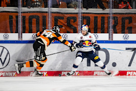 After the first good chance by Wolfsburg's Matt White (1st), the Red Bulls got into the game better. Nevertheless, the Grizzlies scored the first goal when the puck luckily landed with Julian Chrobot, who gave Antoine Bibeau no chance (5th). Midway through the third period, the Red Bulls pushed for the equalizer. Oswald had one of several good opportunities, but there was no getting past Dustin Strahlmeier. In the final period, Wolfsburg were allowed to play twice in superior numbers: After the first opportunity went unused, Machacek deflected a pass with pinpoint accuracy (19th) to make it 2-0 at the break.