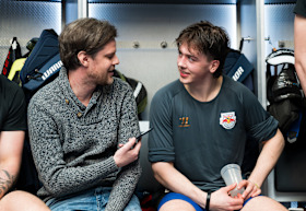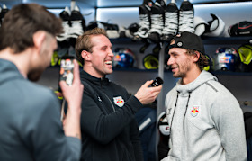 This was followed by an open session in the team's dressing room. There, the press representatives were free to choose and vary their interview partners. "The playoffs are always a good opportunity for us and the press to open up the locker room. The representatives meet us all at once and can get all the voices they need," says captain Patrick Hager, for whom the Open Locker Room has long been routine. "Players who are otherwise not in the spotlight also get to have their say here. At the same time, we save ourselves a few appointments and can concentrate even more on ice hockey."