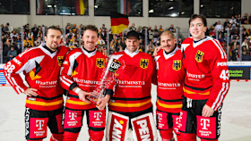 In the final game against Slovakia, it was Fabio Wagner who made the decisive difference: our defender set up the 2-0 goal in collaboration with Maxi Kastner and also scored the 3-0 winner in his hometown. Ultimately, the DEB team secured the Germany Cup for the eleventh time with two wins from three games and a goal difference of 9-6. Next year's tournament will be held in Düsseldorf.
